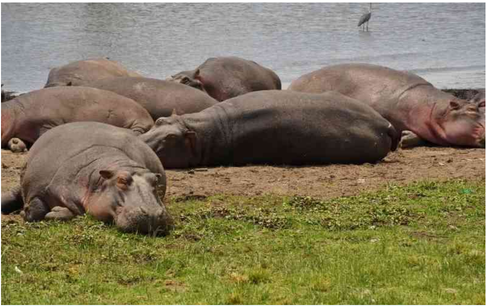 Hippos on the shore of Lake Naivasha where cases of human-wildlife conflict have been on the rise.